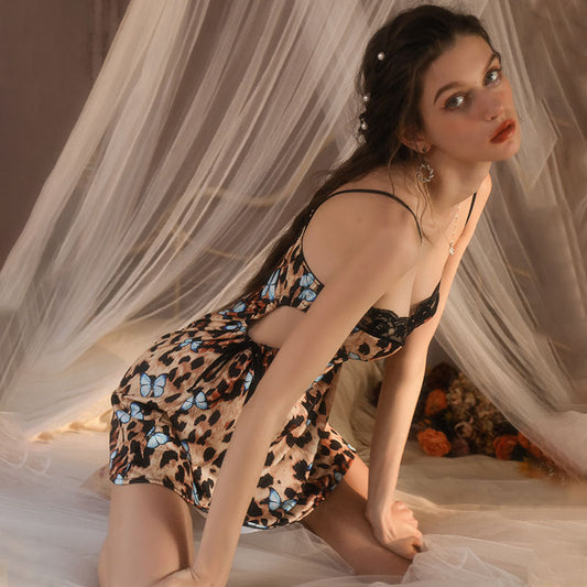 SPAREN [Prozent]Nachthemd mit Schmetterlings- und Leopardenmuster und Trägern