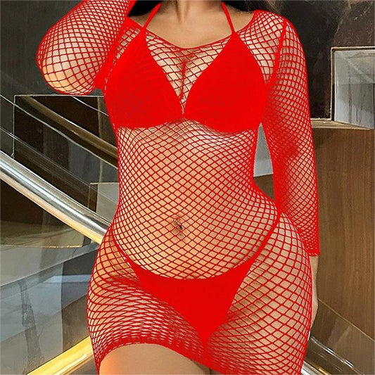 SPAREN [Prozent]Langärmeliger Netzbody-Pyjama, Hüftrock
