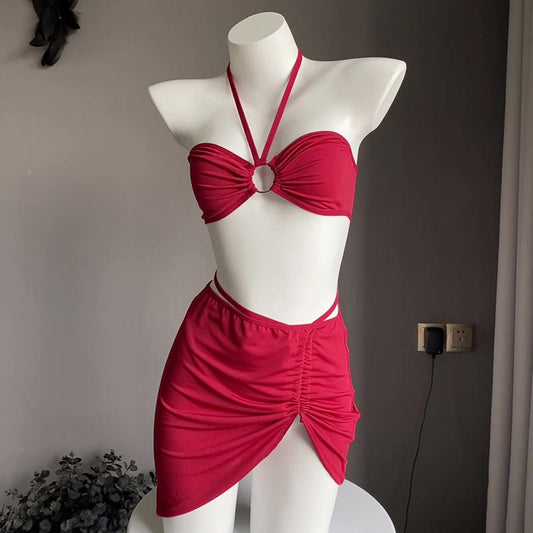 High waist slit nightgown short skirt