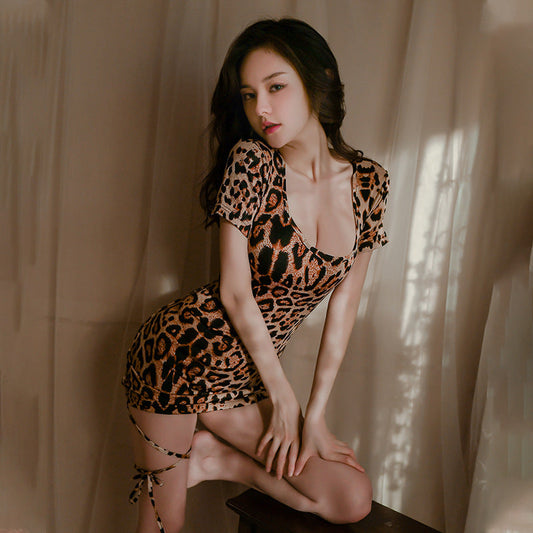 Tempting leopard print suspender nightgown