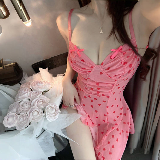Summer Thin Love Mesh Sexy Bowknot Pure Nightdress